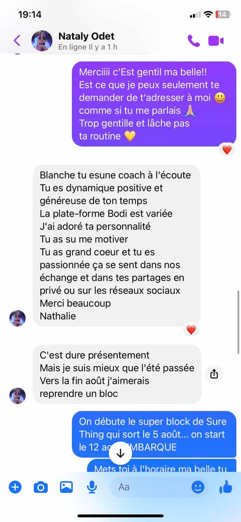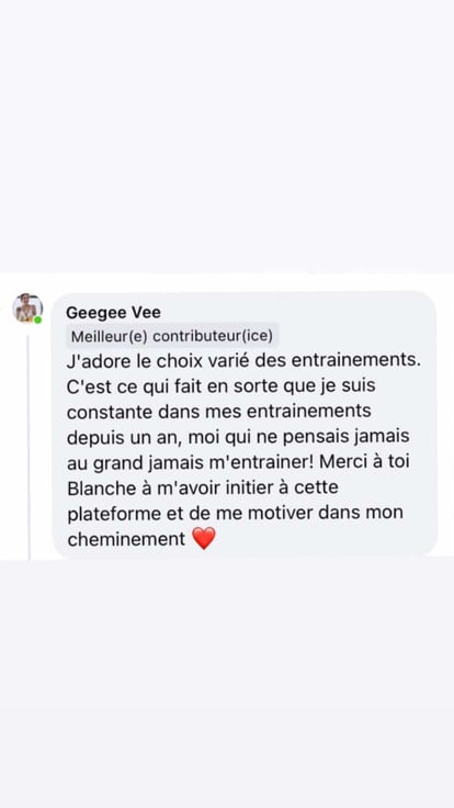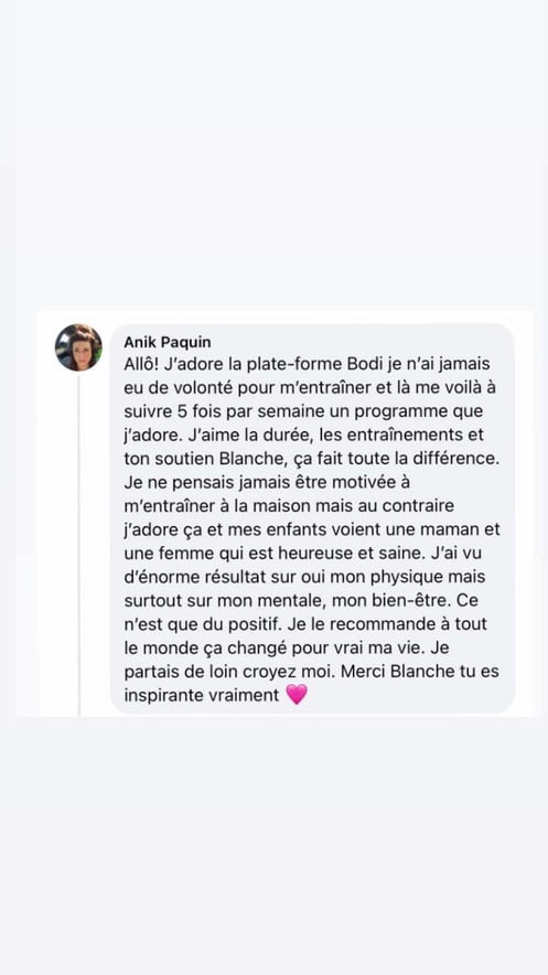 Maintenant je show up pour ma santé physique et mentale quotidiennement. Je me suis enfin mise en tête de liste, je suis ma priorité, de moi à moi avec amour, no matter what.